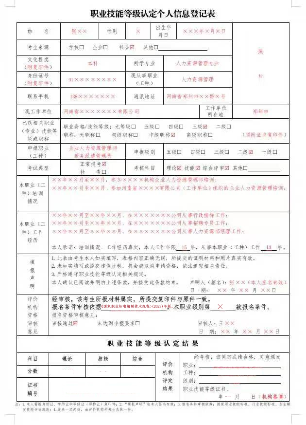 (附件为:职业技能等级认定个人信息登记表)