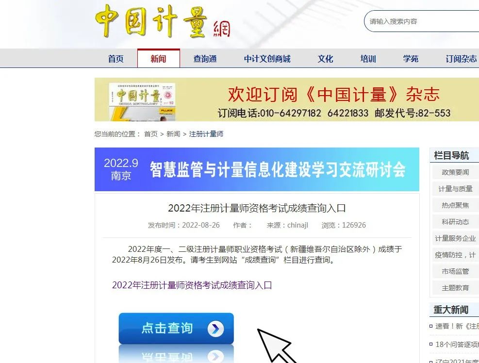 2022年注册计量师成绩查询方法: