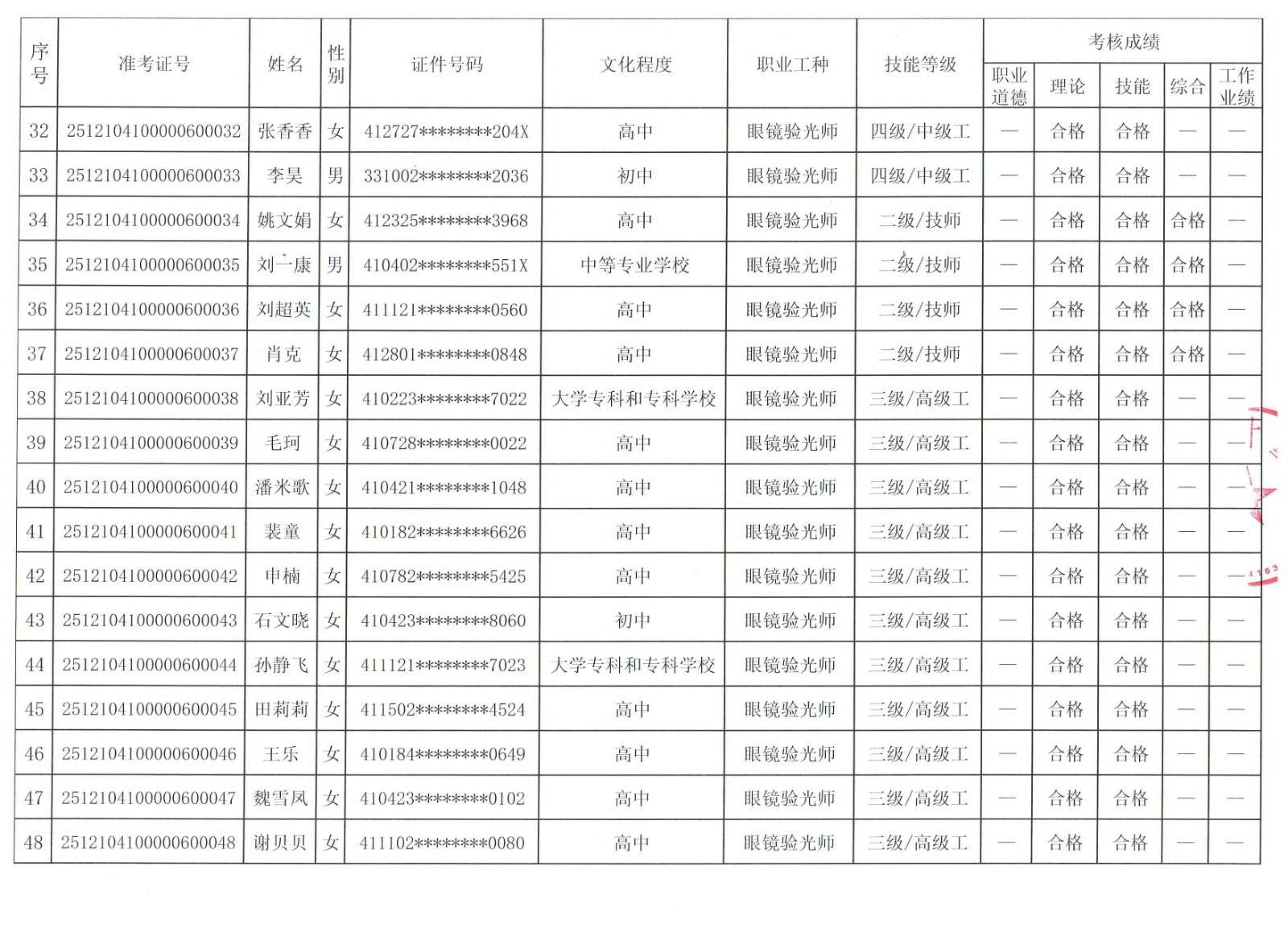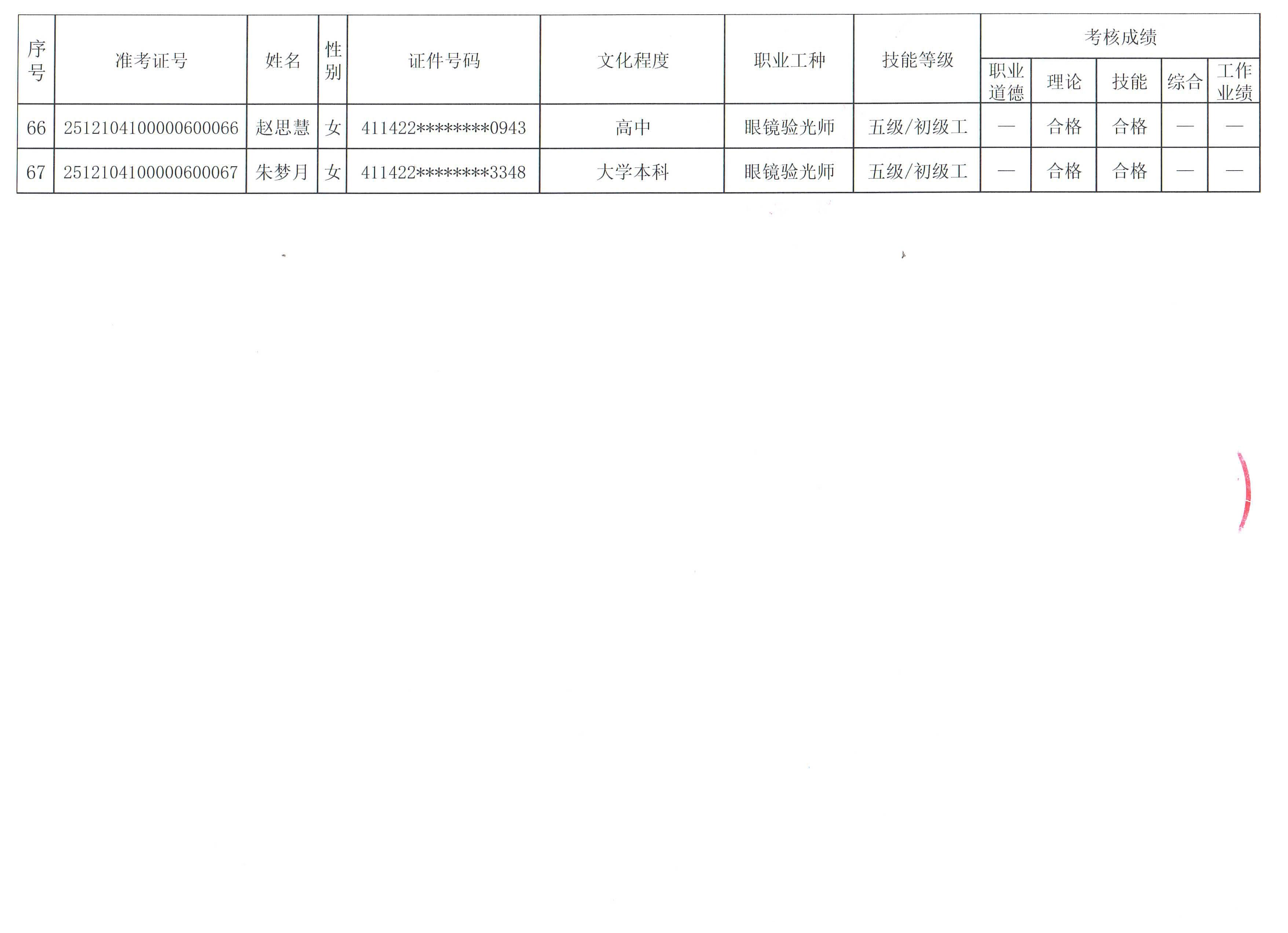 河南省计量协会于20251210日进行了本年度眼镜验光、眼镜定配工(共计67人)职业技能等级评价考试,现将考试成绩予以公示公示时间为:20251212---20251219