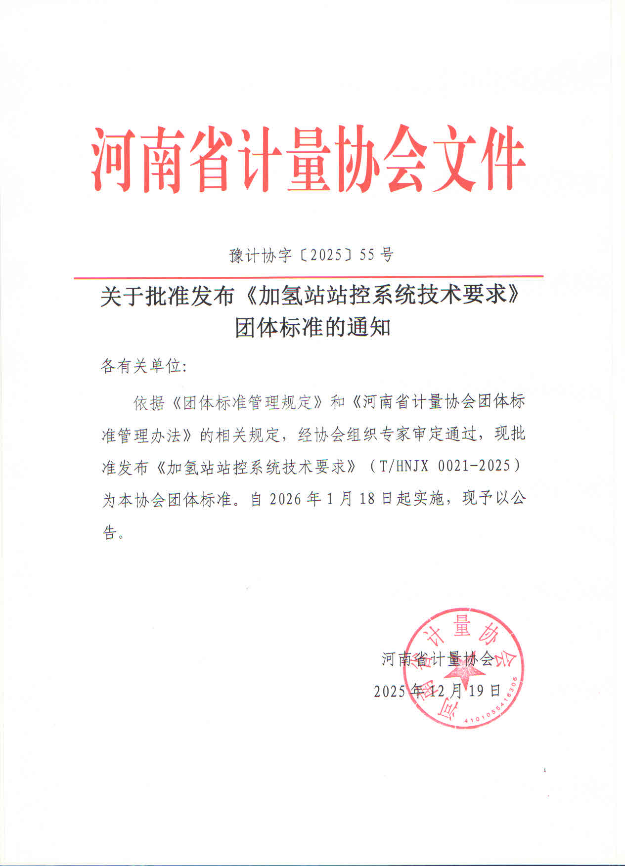 河南省计量协会关于发布《加氢站站控系统技术要求》团体标准的公告